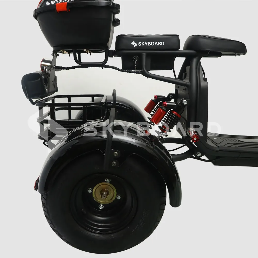 С таким «железным конем» обеспечивается максимальный комфорт при передвижении за счет трехколесной устойчивой конструкции, новой системы амортизации, высоких эксплуатационных характеристик, а также приятных дополнений, в числе которых корзина для личных вещей, расположенная сзади.