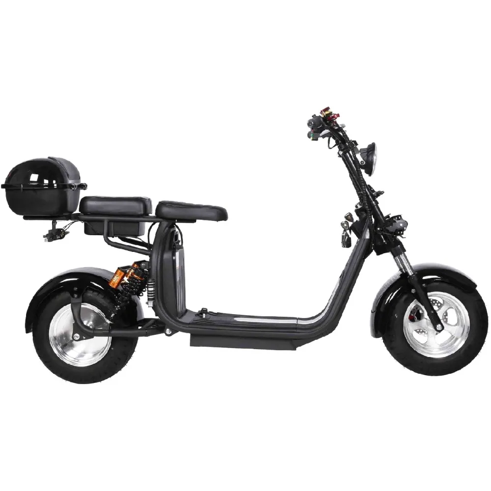 Электроскутер Citycoco Kugoo C6 – обновленный вариант бренда занимает лидирующие позиции в продажах. Брутальный кричащий дизайн заинтересовал райдеров-экстремалов и любителей рыбалки. Широкая отлично сцепляемые шины обещают отличную проходимость и отсутствие проблем в дороге. Техника создана для езды по бездорожью, не разочарует при преодолении небольших препятствий и путешествии по лесным тропинкам.