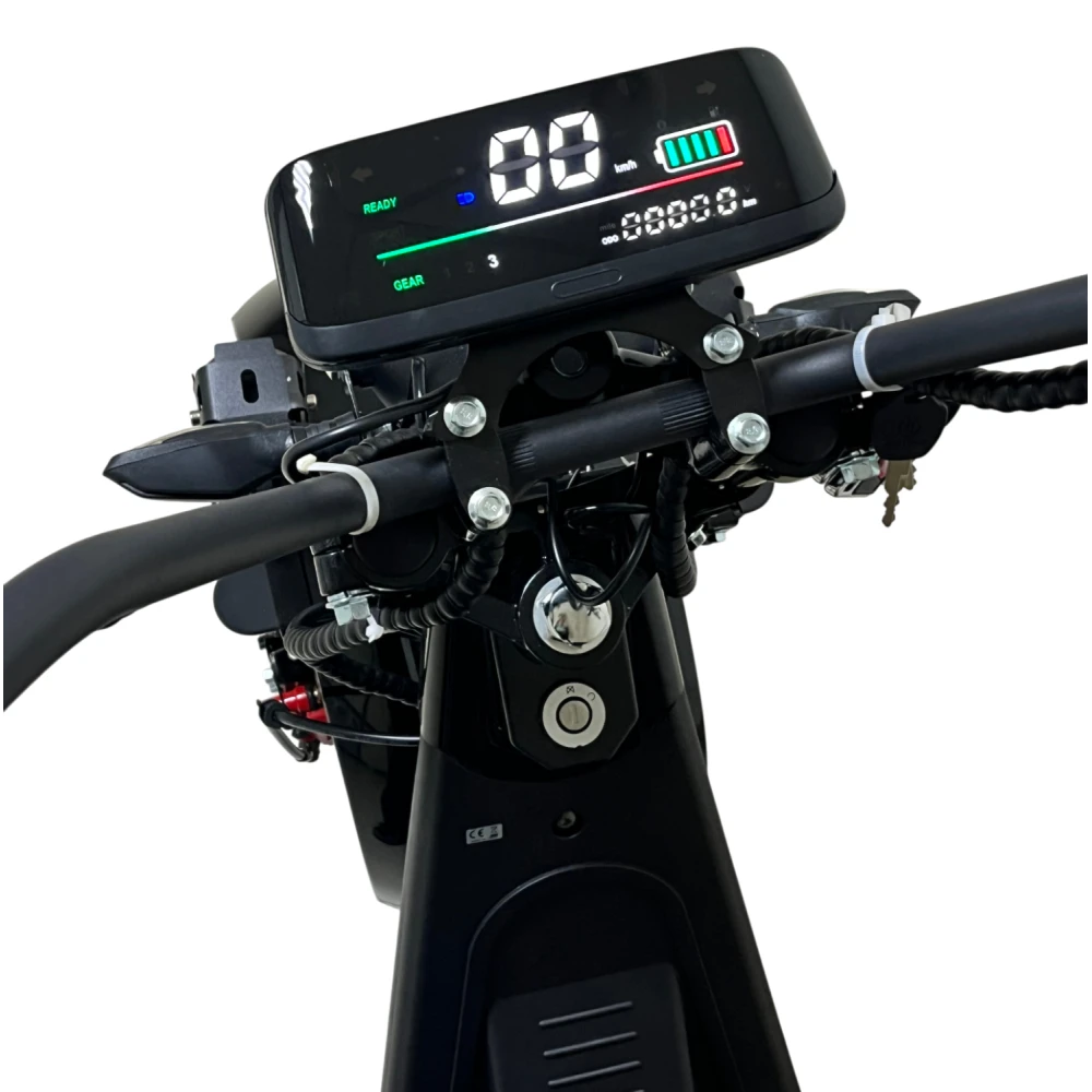 Электроскутер Citycoco GT E30 в черном глянцевом цвете — это универсальное средство передвижения. С мощностью 3000W и задним приводом, он обеспечивает отличную динамику и маневренность на городских улицах. Благодаря двухколесной конструкции и надувным колесам диаметром 18 дюймов, скутер уверенно держится на дороге, что делает его идеальным для поездок по различным покрытиям.Съемный аккумулятор с напряжением 60V позволяет преодолевать расстояние до 50 км на одном заряде, что делает его идеальным вариантом для ежедневных поездок. Время зарядки составляет всего 5 часов, что обеспечивает быструю готовность к новым приключениям. Кроме того, в конструкции предусмотрено дополнительное место под аккумулятор, что увеличивает возможности автономной работы.Скутер весит 75 кг и может выдерживать максимальную нагрузку до 200 кг, что делает его подходящим для различных пользователей. Дисковые гидравлические тормоза обеспечивают надежную остановку, а большое мягкое сиденье и амортизаторы гарантируют комфорт даже при длительных поездках.Дополнительно, Citycoco GT E30 оснащен бортовым компьютером, зеркалами, звуковым сигналом, фарой и поворотниками, что повышает безопасность и удобство. Большая дека под ноги и прочная конструкция делают поездки еще более приятными.Электроскутер Citycoco GT E30 — это идеальное сочетание стиля, мощности и комфорта для тех, кто ценит удобство и скорость в городской среде.