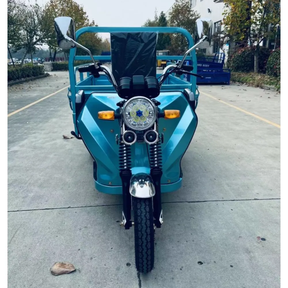 Техника изготовлена из высокопрочного материала, который в ходе эксплуатации не теряет своих характеристик. Производитель учел все пожелания и оснастил модель шасси с гидравлическими амортизаторами. Для безопасности движения у электротрицикла барабанные передние и задние тормоза. Транспорт имеет мотор мощностью 1000 Вт, что позволяет развивать скорость до 30 км/час. Количество циклов разрядки/зарядки составляет 700. Ресурса батареи хватает на 15 тыс.км. Это доступный вид транспортного средства с максимальной нагрузкой до 350 кг груза, не требует сложного обслуживания.