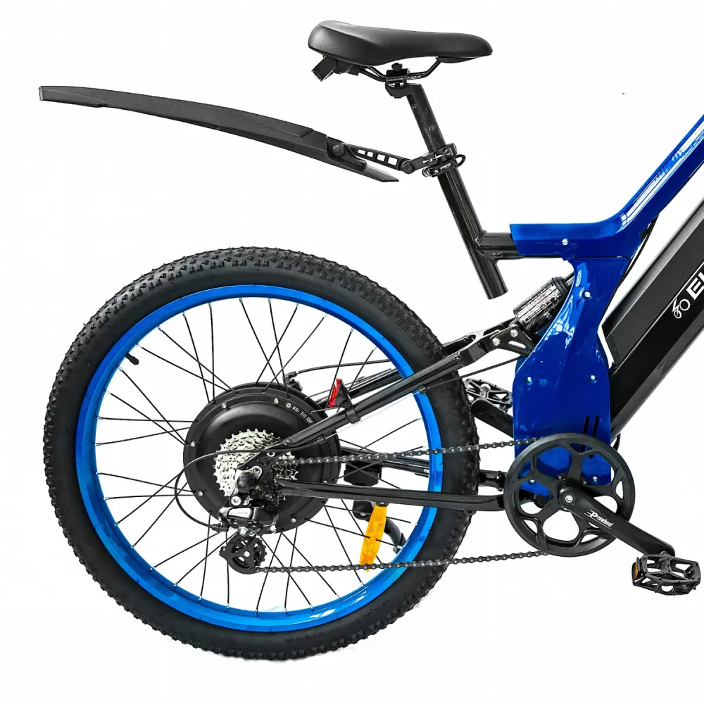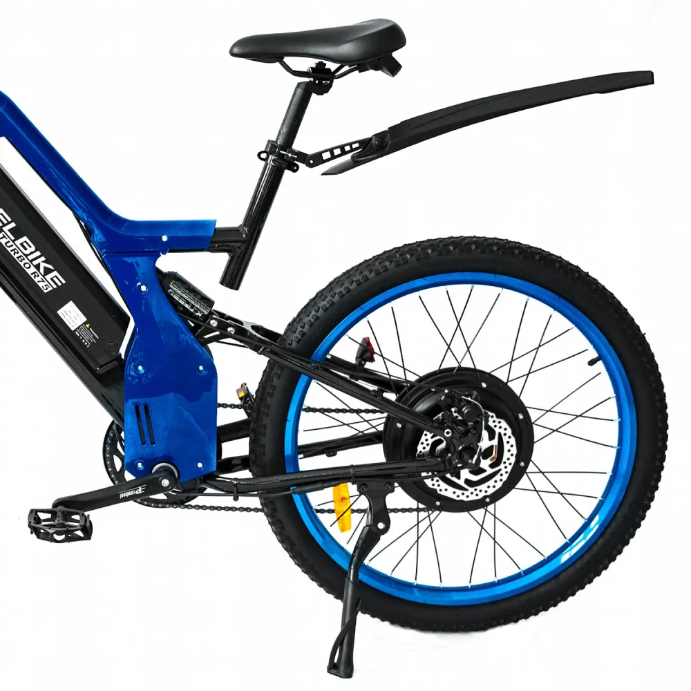 Электровелосипед Elbike TURBO R65 премиум класса представлен в благородном синем цвете. Мощный мотор 500 Вт, большой размер колёс в 26 дюймов, электровелосипед разгоняется до 40 км/ч.