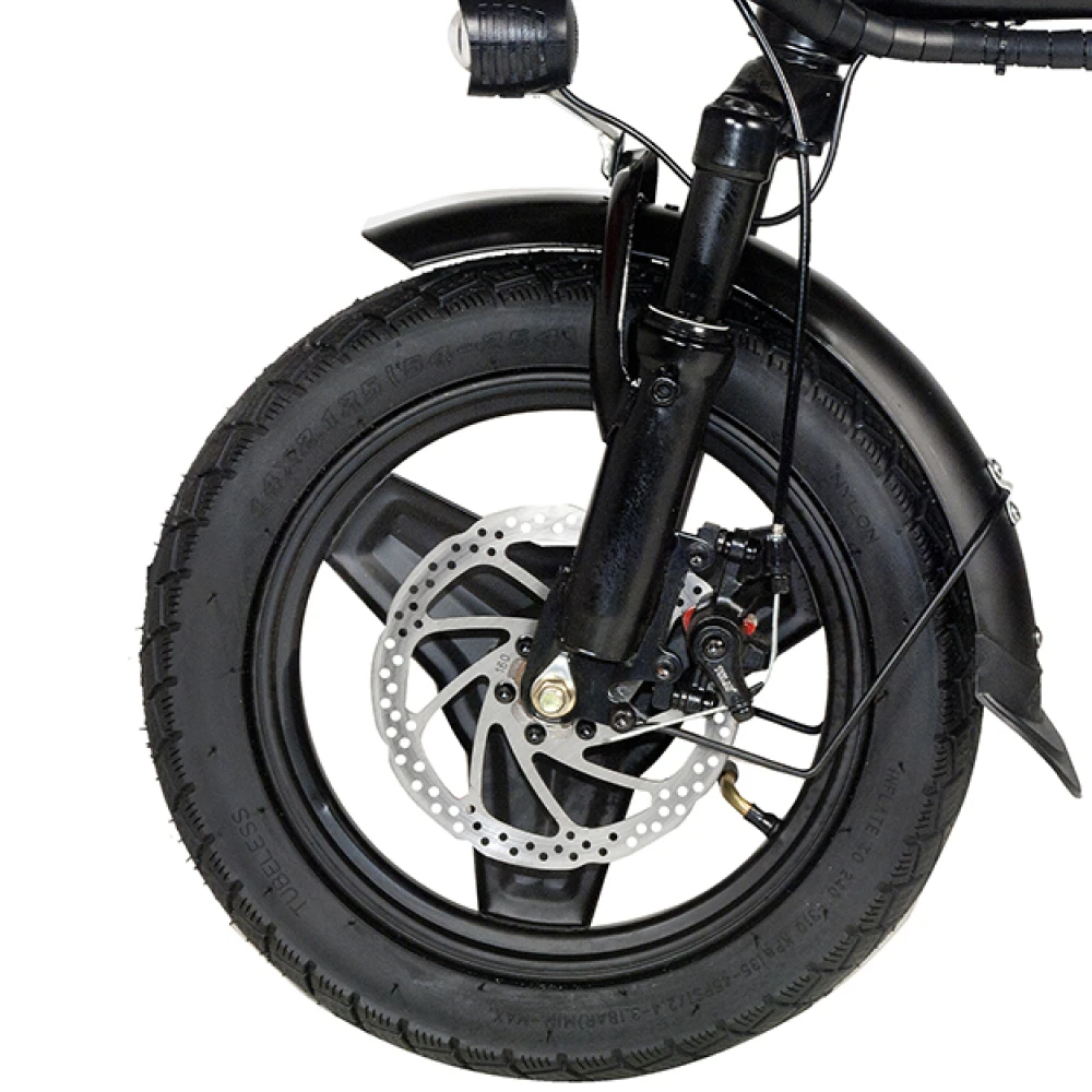 Аккумулятор на 20 Ah обеспечивает запас хода до 70 км, что позволяет наслаждаться длительными поездками без подзарядки. Сиденье для второго пассажира делает путешествия вдвоем еще более увлекательными. Дисковые тормоза гарантируют надежное и быстрое торможение, а максимальная скорость в 50 км/ч делает каждую поездку динамичной и захватывающей. С диаметром колес 14 дюймов и весом всего 28 кг, этот электровелосипед сочетает в себе легкость и маневренность, обеспечивая непревзойденное удобство в использовании.