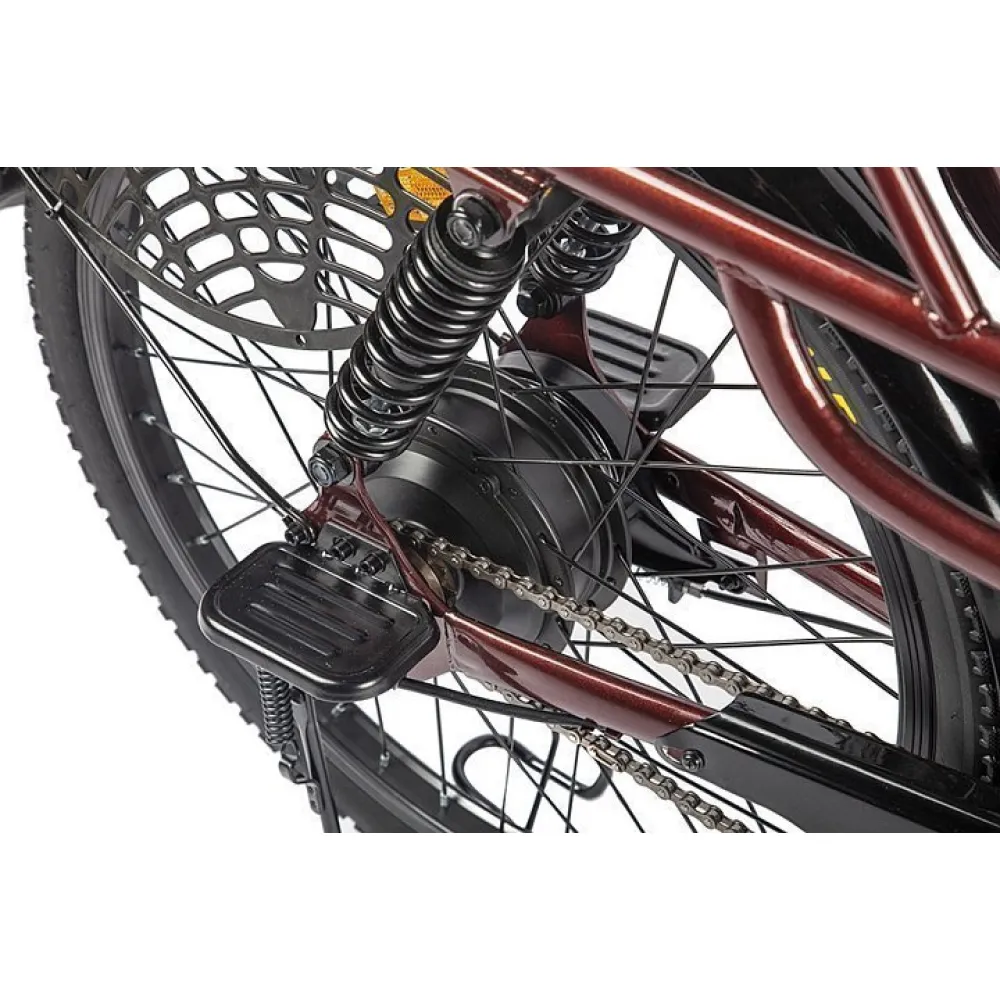 Усовершенствованная модель дополнительно оснащена задними пружинными амортизаторами, чтобы не доставлять дискомфорт при перевозке пассажира или груза на заднем сидении. Рама электровелосипеда изготовлена из стали повышенной прочности, а общая нагрузка на велогибрид не должна превышать 130 кг.
