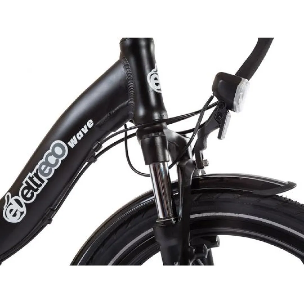 Электровелосипед Eltreco Wave оснащен мотор-колесом мощностью 350 Вт. Редукторный двигатель имеет равномерное ускорение и экономное энергопотребление. Максимальная скорость движения 25 км/ч. Литий-ионный аккумулятор имеет емкость 10.4 А*ч, на этом количестве заряда транспортное средство может проехать свыше 60 км пути. Зарядить аккумулятор можно за 6 часов, подключив зарядное устройство.