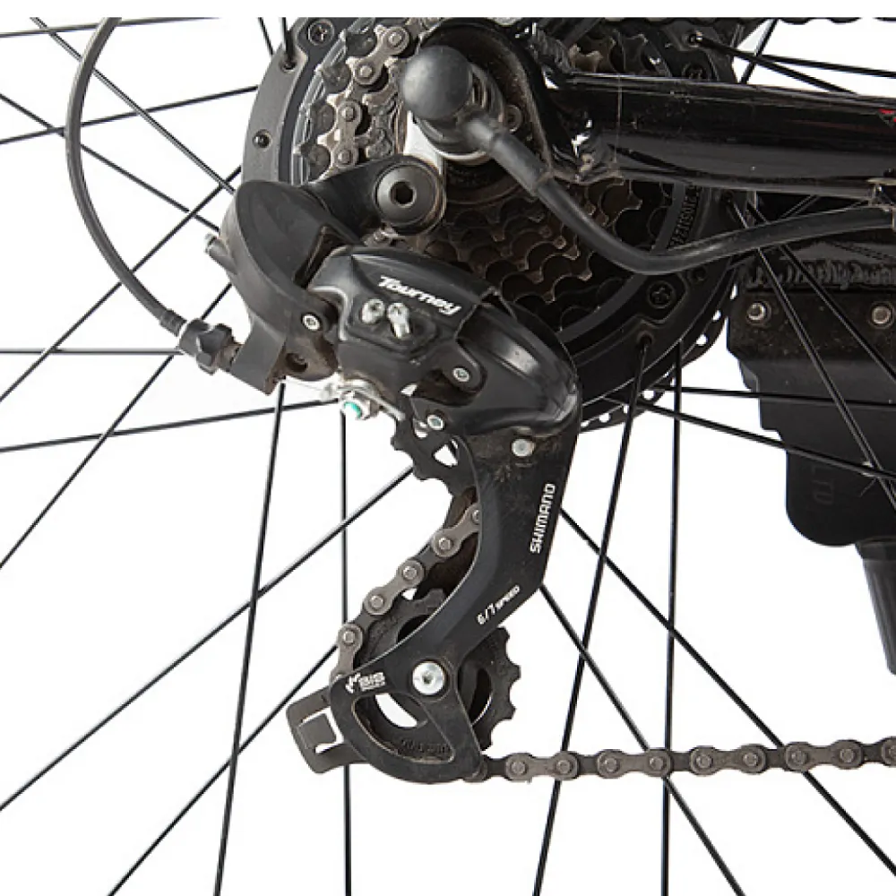 Установлен электродвигатель мощностью 500W, плавно трогается с места. Оснащён семи скоростной трансмиссией. Велогибрид имеет яркую светодиодную переднюю оптику и задний светоотражающий катафот. За остановку велогибрида отвечает дисковая гидравлическая тормозная система спереди и сзади. Тормоза отлично реагируют в любых погодных условиях и дают возможность плавной остановки.