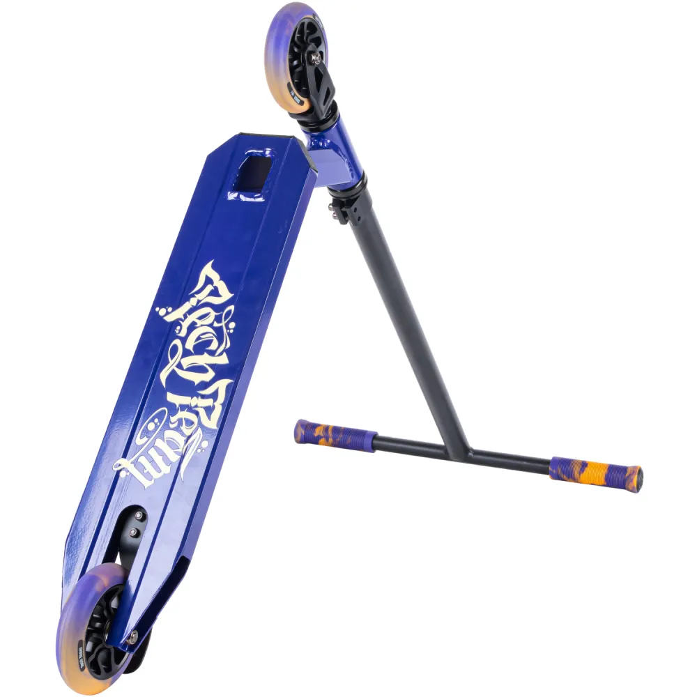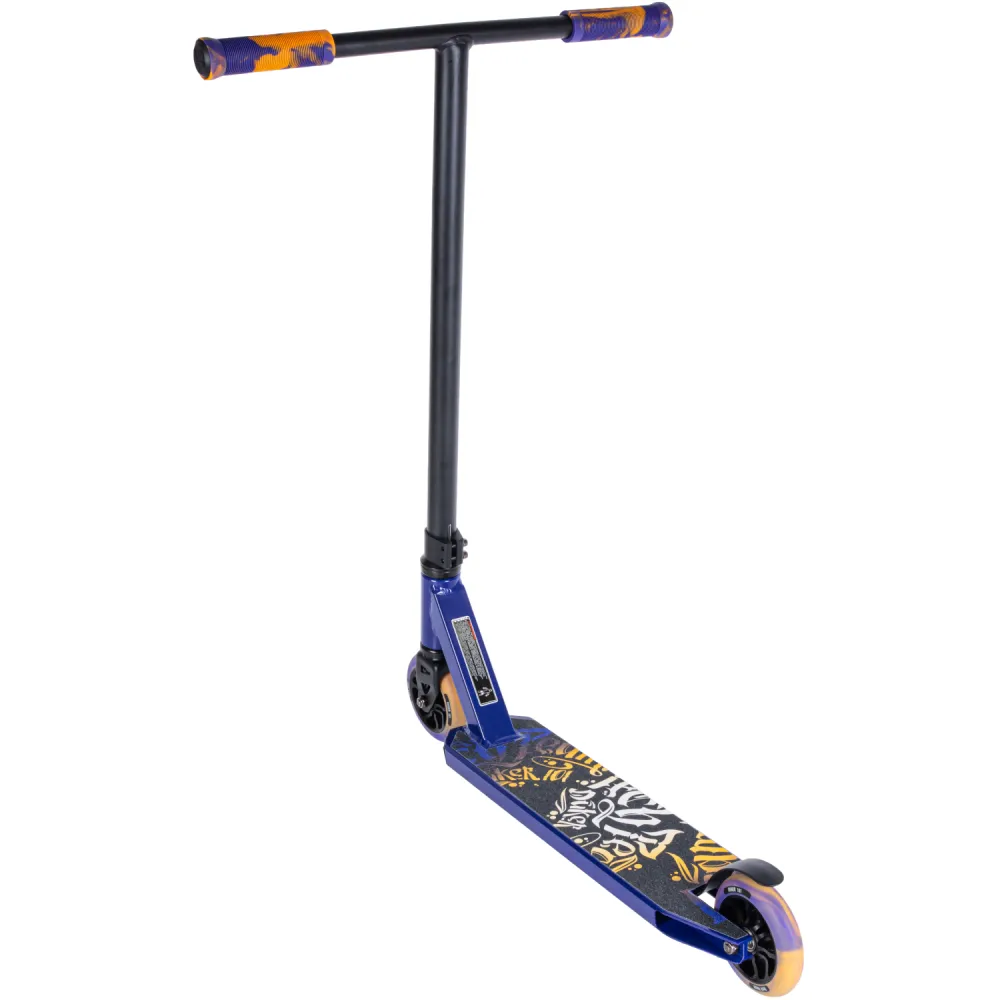 Самокаты изготавливаются в чёрных и фиолетовых тонах с дизайном «леттеринг». Грипсы 12 см, имеют два цвета с барендами из пластика.