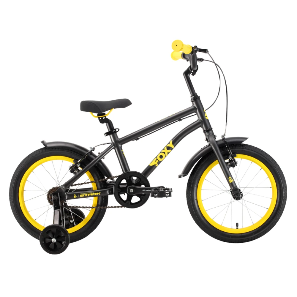 Велосипед Stark'22 Foxy Boy 16 черный/желтый - это уникальный велосипед, специально разработанный для мальчиков, с превосходными характеристиками.